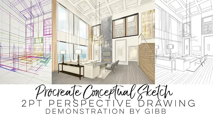 别墅客厅两点透视手绘教程