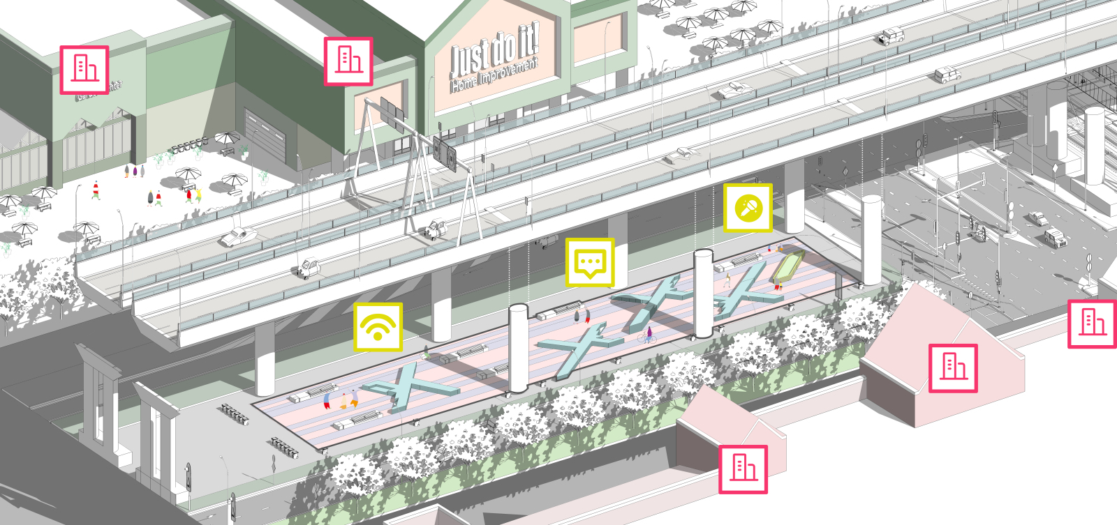 街道扁平风鸟瞰图04 图纸细节完善与图标添加