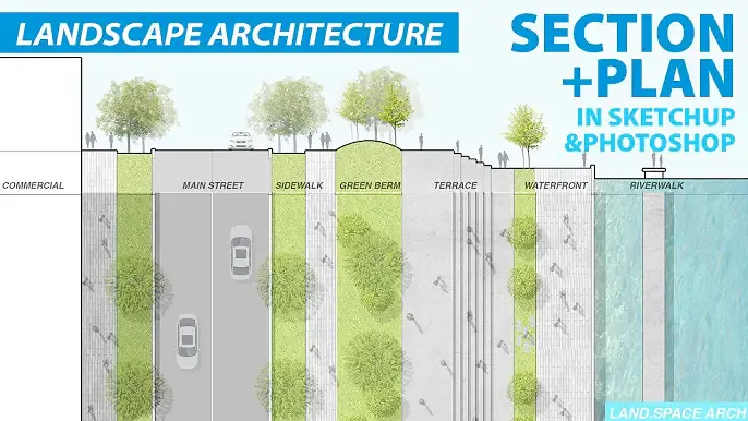 Sketchup和Photoshop中的景观设计部分和平面效果图