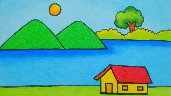 为孩子们绘制风景画|河边小屋和自然景观