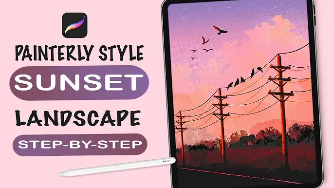 日落和电线 绘画风格的景观