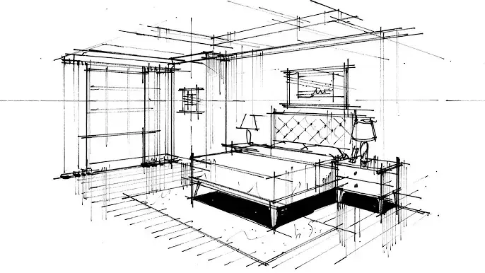 手绘渲染 网格卧室透视 完整 210221