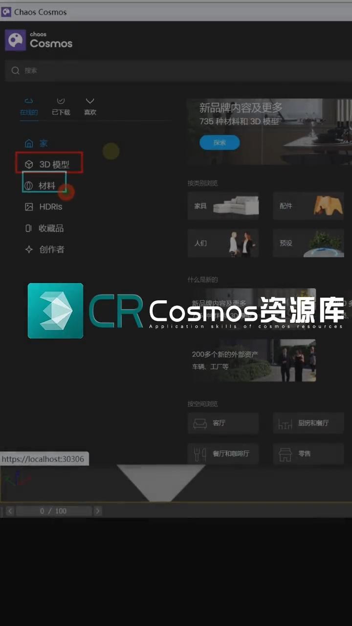 Cosmos在线资源库 分类模型 材质 HDR一键拖拽导入 cosmos打不开的解决办法 3dmax