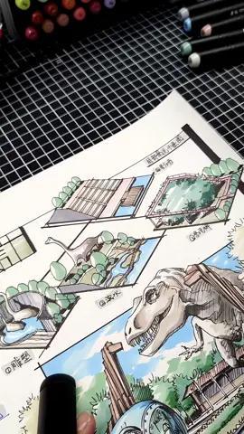景观手绘恐龙主题公园上色 风景园林手绘
