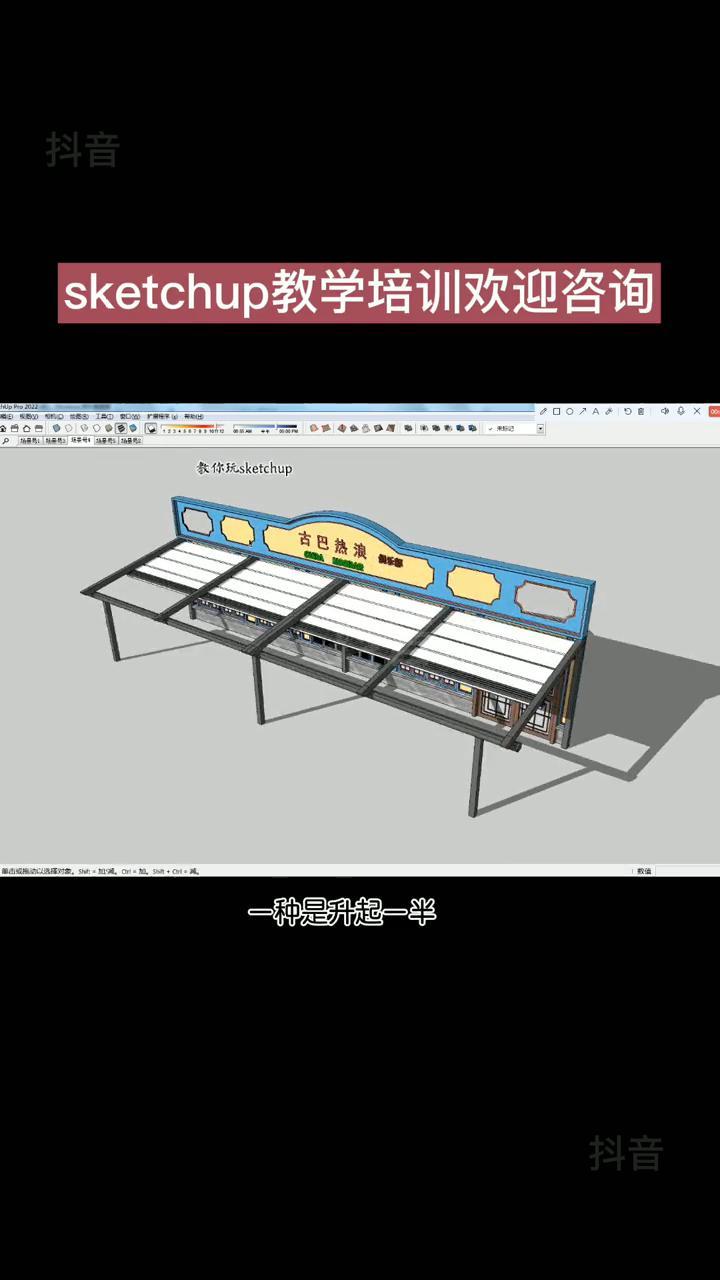 遮阳棚sketchup建模 草图大师演示遮阳棚安装效果 su遮阳棚建模演示安装 三维建模 设计 3d建模 建筑