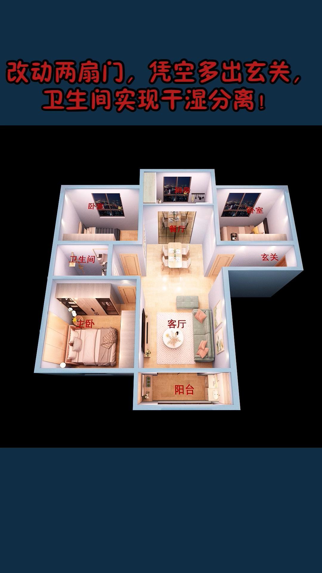 受不了窄小的玄关和卫生间 改动两扇门 凭空多出玄关 卫生间实现干湿分离 户型改造 生活的美无处不在