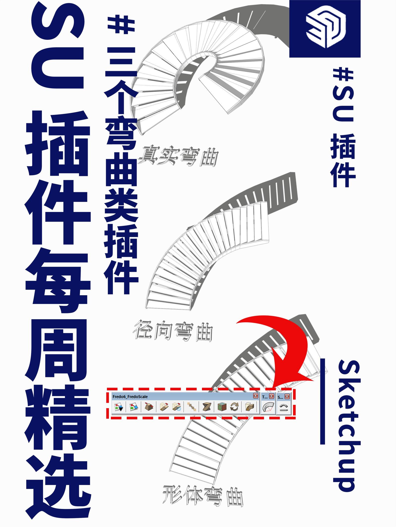 三款弯曲类插件 让su建模旋转楼梯不在困难 su建模 3d建模 设计 设计装修