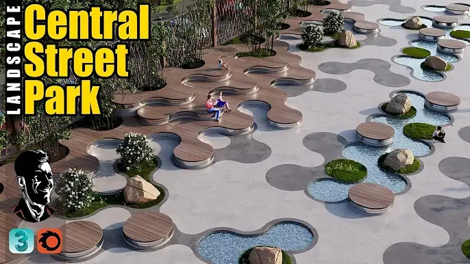中央街道公园 景观 外部教程 3DsMax+Corona渲染器 逼真渲染